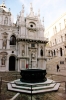 Раньше со стороны моря перед дворцом не было широкой набережной, может быть, поэтому парадные «Бумажные ворота» (Porta della Carta), построены со стороны Пьяцеты, рядом с базиликой Сан Марко. Названы они так потому что, по одной версии у ворот сидели писцы, которые за денежку писали письма, просьбы, жалобы и т.п., по другой – просто потому что расположены рядом с архивом. Ворота богато украшены, над ними Святой Марк со львом, но его трудно заметить, потому что при подходе первое, что притягивает взгляд – 4 порфировые темные, как будто обнимающиеся или дружески похлопывающие друг друга, мужские фигуры. Скульптура называется Тетрархи (римские правители), в простонародье – 4 мавра, ее венецианцы стащили в Египте. Выглядит она столь необычно, что мне кажется, я так и не подняла взгляд на Св. Марка.